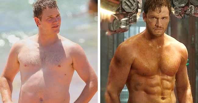 In order to play a lead in Guardians of the Galaxy and Jurassic World, Chris Pratt lost over 60lbs in 6 months and saw his pudgy midriff turn into a washboard stomach! Whether he decides to keep his svelte form is yet to be seen...