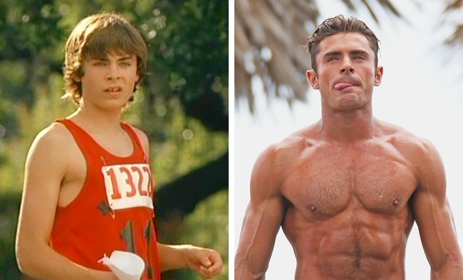 As a teenager, Zac Efron was cute, but not a muscle man. When he got offered a role in Baywatch, he had to start body building in order to look like a professional life guard. He was fortunate to have a helping hand from Dwayne Johnson, AKA The Rock, who helped him work out in between scenes.