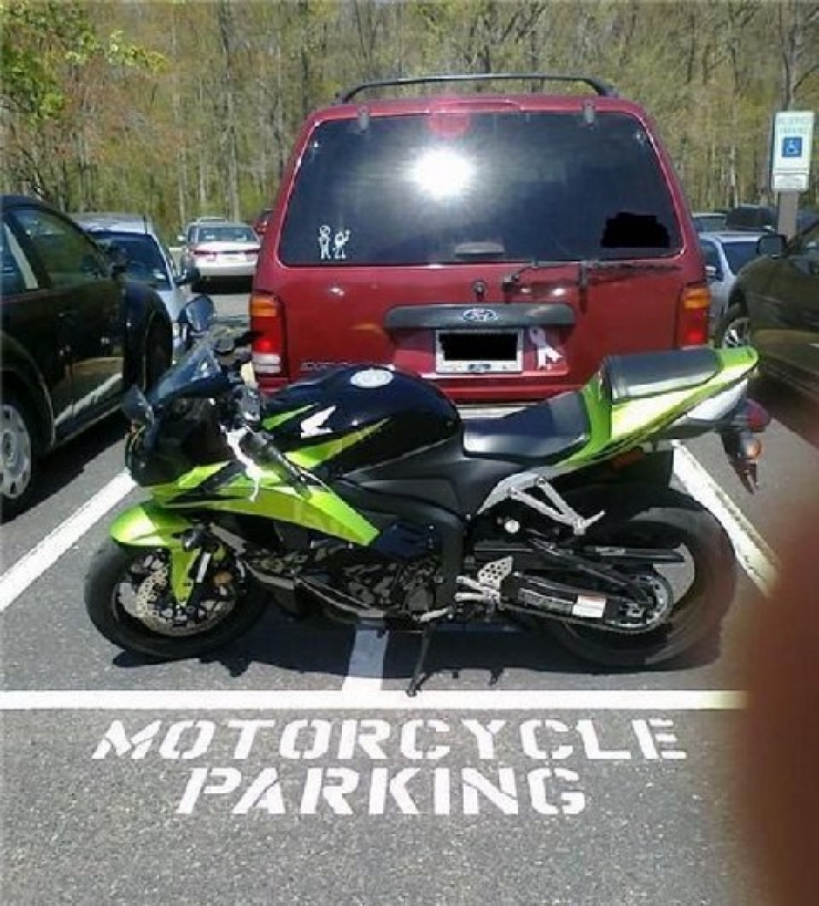 9. 'There's something wrong with your bike. It has too many wheels. Do you want me to call a garage? Signed: a motorcyclist in a motorcycle parking spot