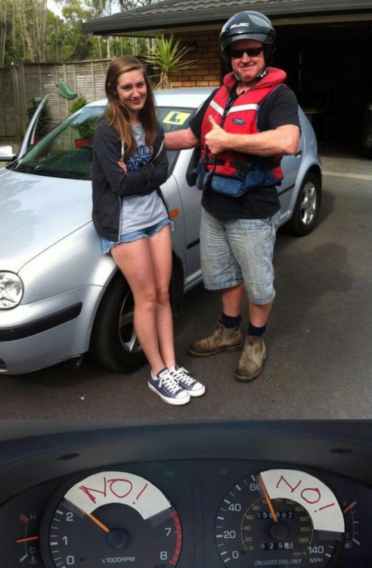 1. This dad isn’t taking any chances with his daughter's first driving lesson!