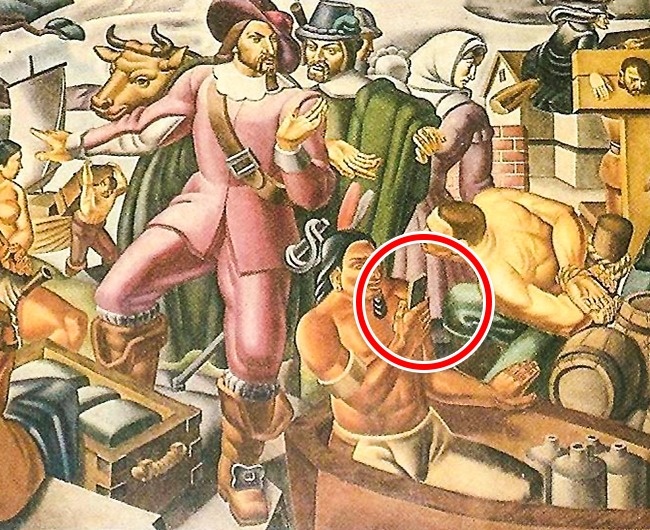 So, what's your take on this 1933 painting - Umberto Romano's 'M. Pynchon and the Colonization of Springfield'? Some believe one of the native Americans is sending an SMS, but in reality we believe it was a mirror and not an iPad precursor!