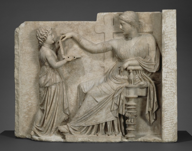And what about laptops? This Ancient Greek grave marker shows a young girl holding what looks like a laptop - or at least that what's some people claim! Personally, we reckon it's nothing more than a case that contains a valuable object.