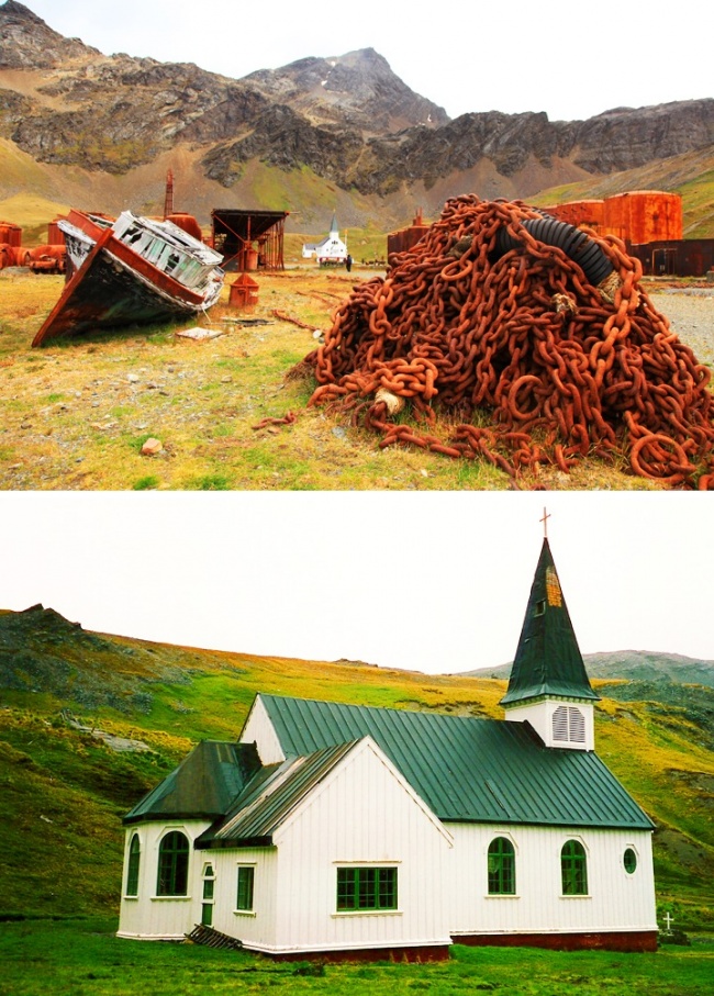 Grytviken is an administrative center corresponding to the British overseas territory. It was here in 1904 that the first whaling station in Antarctica was established. Only the church has retained its role and continues to hold weddings. The most recent took place on November 18, 2009.