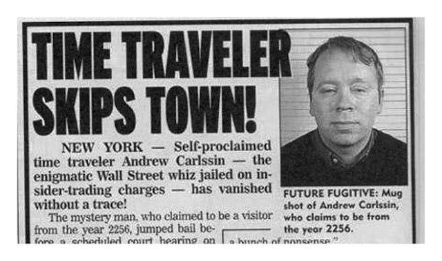 When questioned he claimed that he got his information by traveling to the future using a time machine that took him to the year 2256! An unknown person paid his bail so that he could be released from prison and he was never seen again...