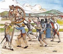 Ever wondered why Catherine Wheels often feature in firework displays? Well, they're derived from a method of torture where the victim was attached to a wheel that was then set on fire and left to roll down a hill. If the victim survived this ordeal, they were left attached to the wheel so that insects and birds could gnaw away at their flesh.