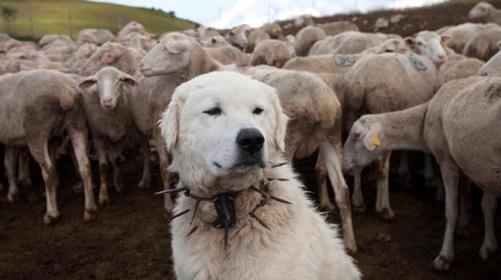 4. This dog is wearing a special collar to protect himself from wolves.