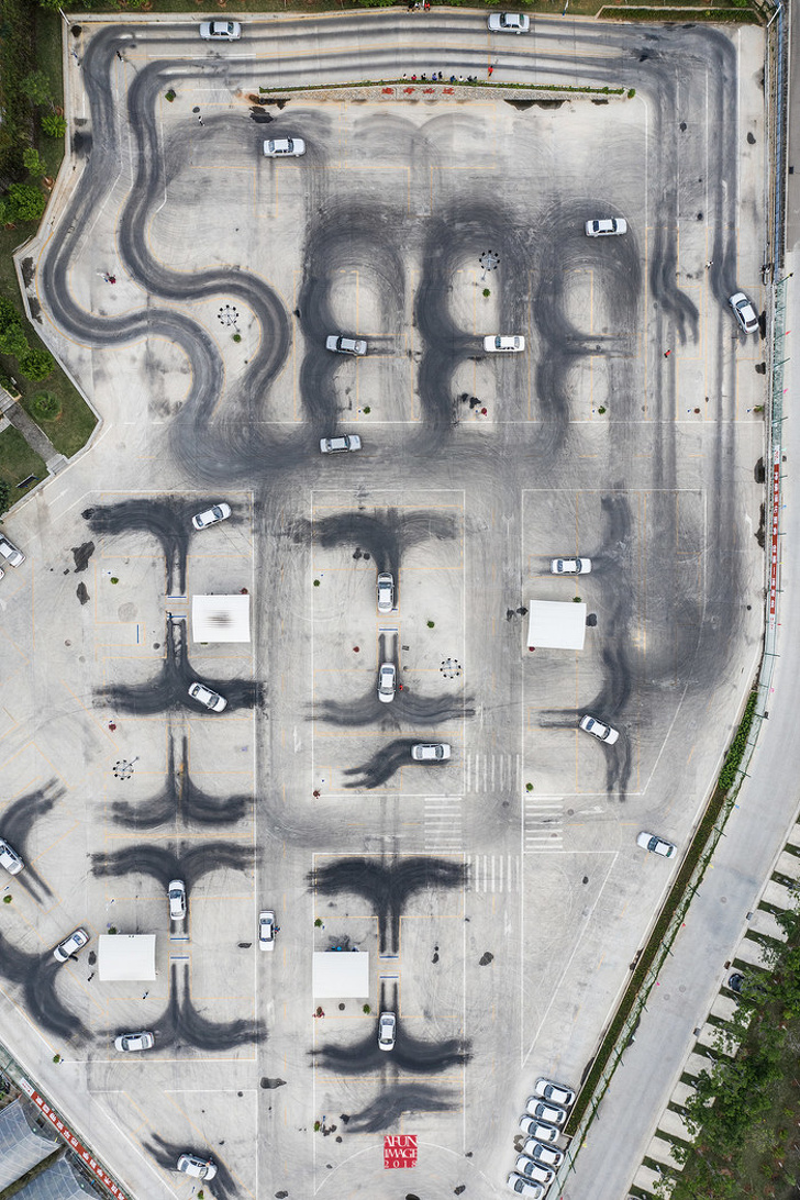 8. Learning to drive leaves tracks...the evidence as seen from above a driving school.