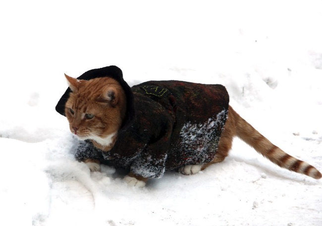 Philemon is a stray cat that took refuge in a St Petersburg museum. The staff quickly realized he was domesticated and shared Philemon's story on the museum's website. Word spread and before they knew it locals began to donate food with one person giving him this warm winter coat!