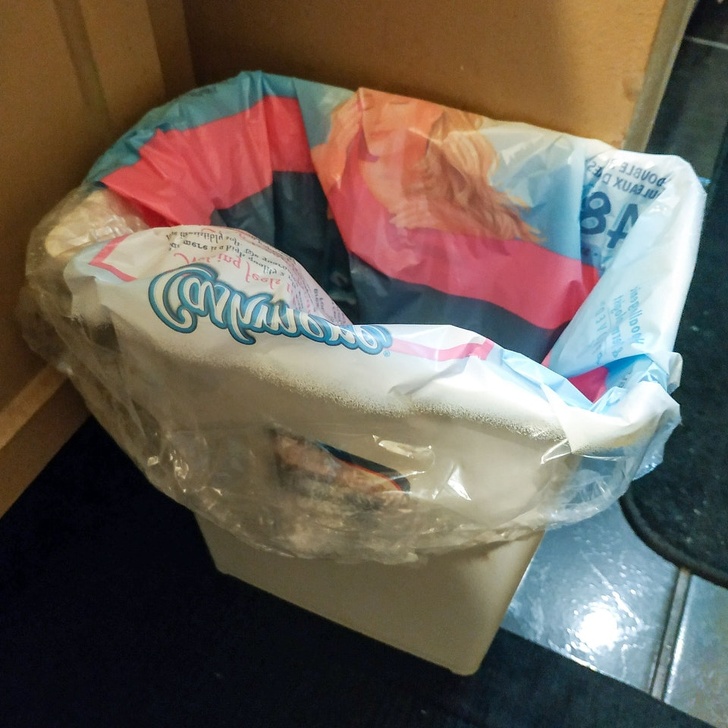 4. Use toilet roll packaging as a trash can liner