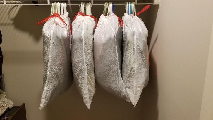 7. Moving home? Wrap hanging clothes in trash bags for an easy-to-carry solution!
