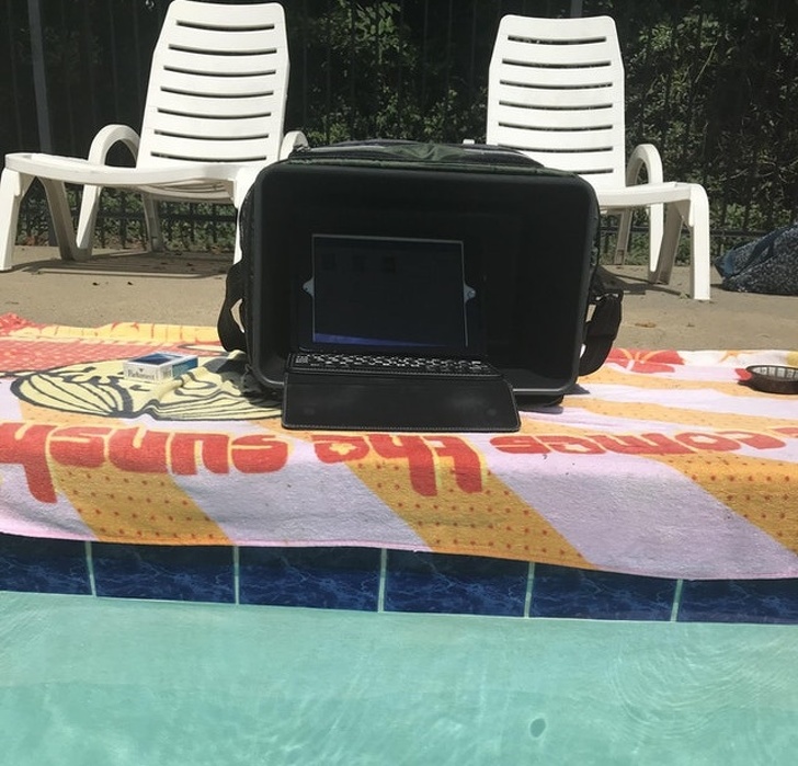 9. "I put my iPad inside a cooler so I could work IN the pool! The cooler kept the glare off the screen and I put an ice pack in there to keep it cool."