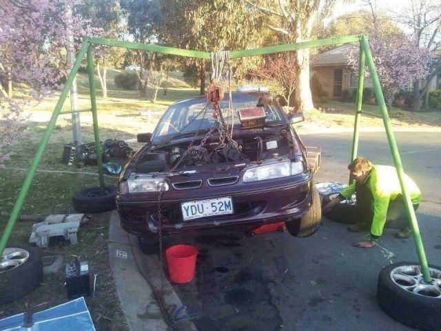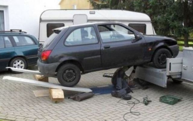 4. Repairing a sign while relying solely on the strength of your co-worker