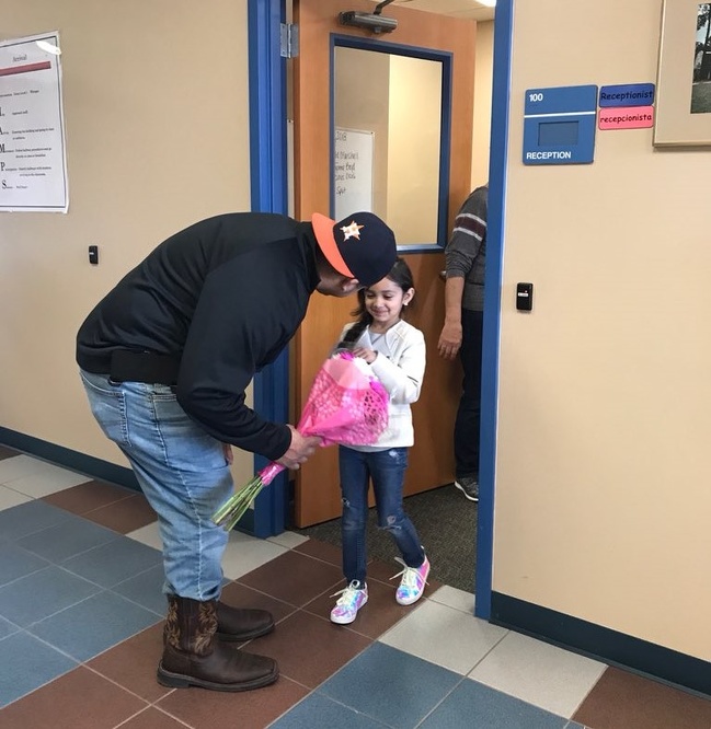6. For his daughter's birthday, this dad takes an hour off work to buy flowers and deliver them to her at school