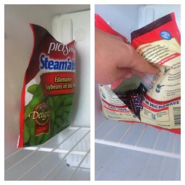 It was while putting groceries away that she found her husband's secret hiding place: a packet of frozen beans!