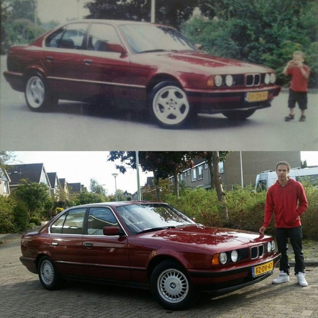 9. This little guy always said he'd buy the same car as his dad... Here he is 16 years later!