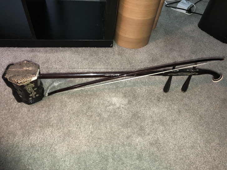 8. This is an erhu, a traditional Chinese musical instrument with 2 metal strings