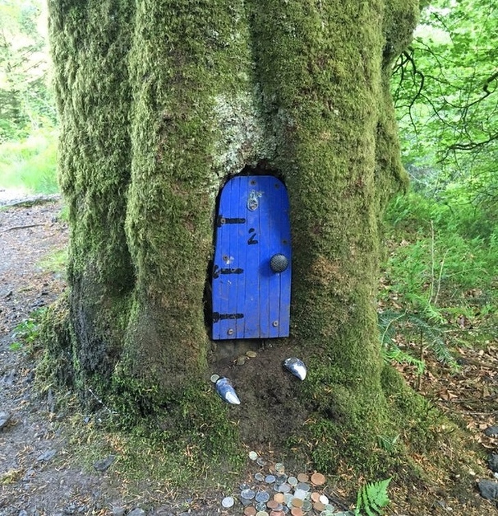 6. A fairy door stuck to a tree where passersby can leave a message or gift!