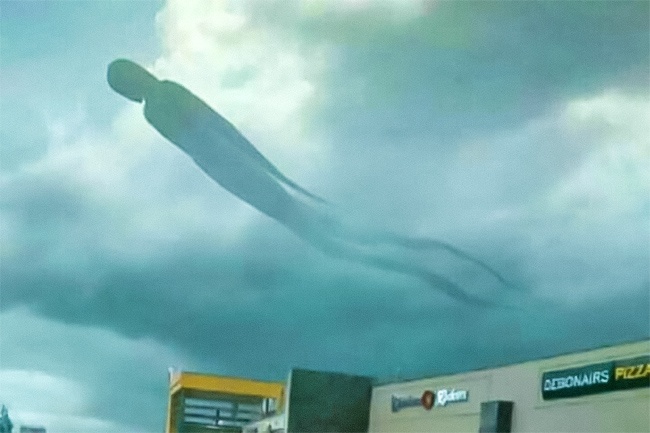 Last March a Zambian newspaper printed a photo of a creepy figure floating above a supermarket. People wondered if it was a deity, but the photo proved to be a fake. Even so, you can buy huge balloons that create a similar effect!