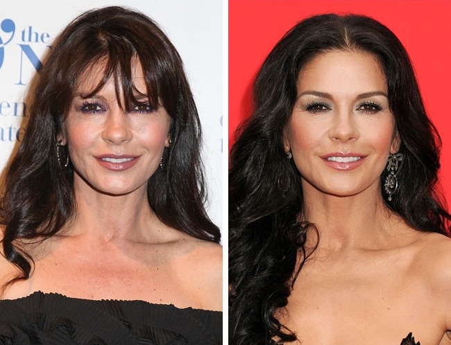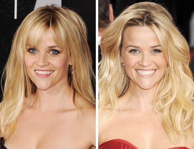 Here are 15 household names with and without bangs. What's your verdict? Great improvement or sack the hairstylist?