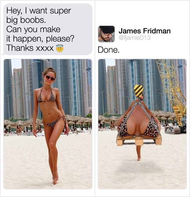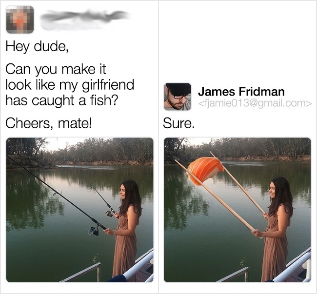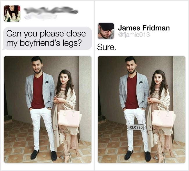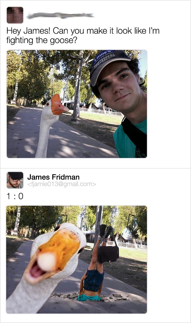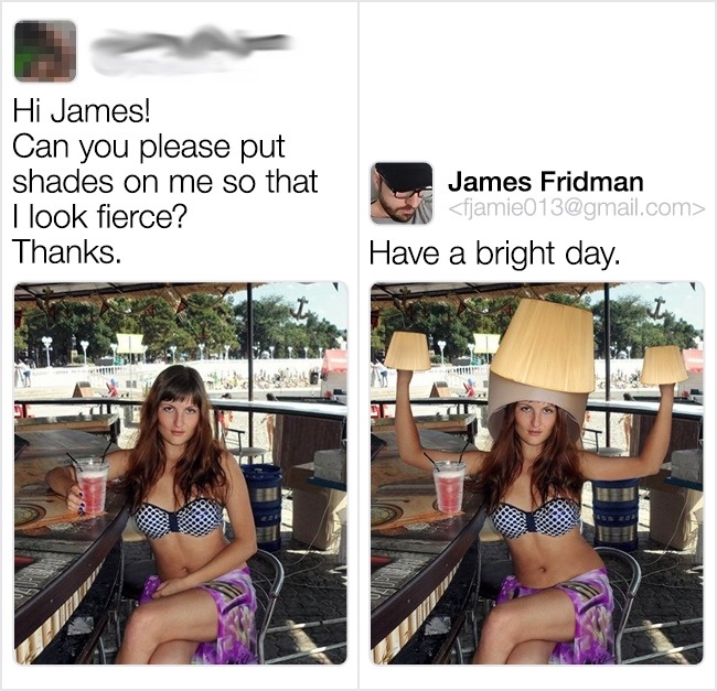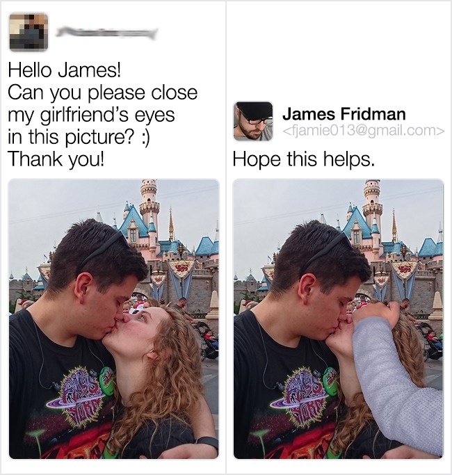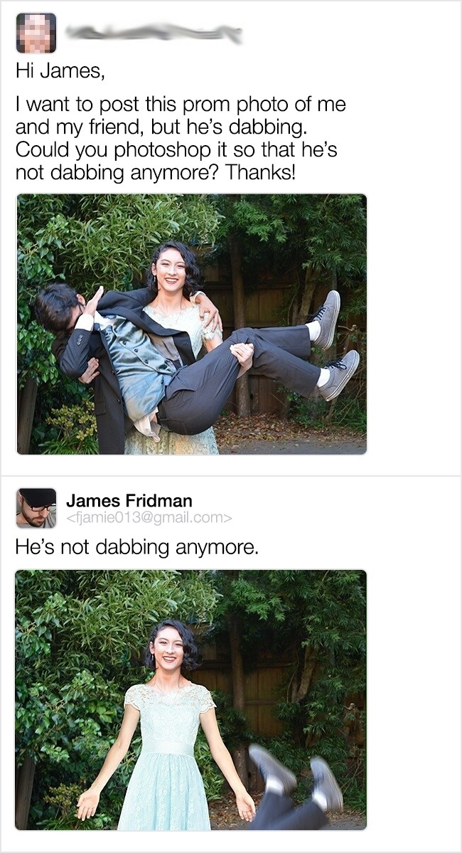 Most of us have heard of James Fridman, a Brit who's become the King of Photoshop Trolling. Just be prepared for a surprise if you ask him to retouch a snap, as he tends to follow instructions down to the letter, much to the delight of his fans (and us)! If you need his magic touch, just post your shot on his Twitter page and then wait for the results - bearing in mind that all retouched photos are made public and may well go down in internet history!