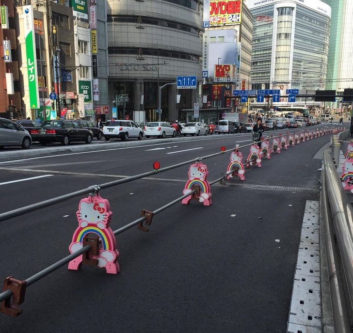 14. Construction barriers in Tokyo are brightened up by Hello Kitty…