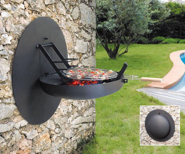 7. A barbecue grill that hangs on the wall