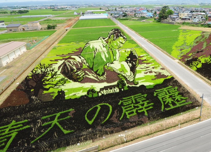 15. Farmers in the Japansese town of Inakadate 'landscape' their paddy fields by planting different colored rice