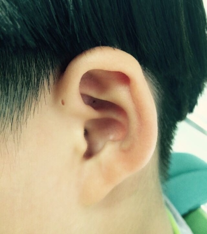 13. A pre-pierced ear