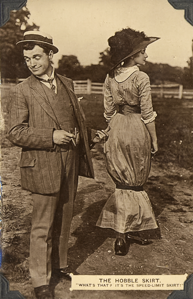 At the turn of the 20th Century, elastized clothes didn't exist, meaning that fabrics would easily tear. To prevent this, women would attach loops to the base of their skirts to stop them from inadvertently taking long steps. The problem was that they looked like they were hobbling rather than walking!