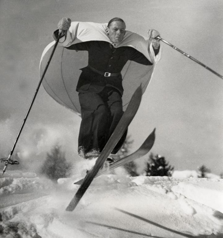 8. Skiing meets paragliding in Austria in 1938