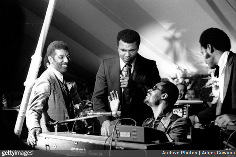 5. It's the 1980s and Muhammad Ali joins Stevie Wonder on stage