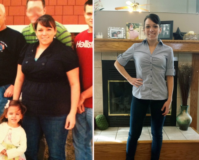 There’s 100 pounds difference between these two photos. This young woman is proud to get her body back after her pregnancy.