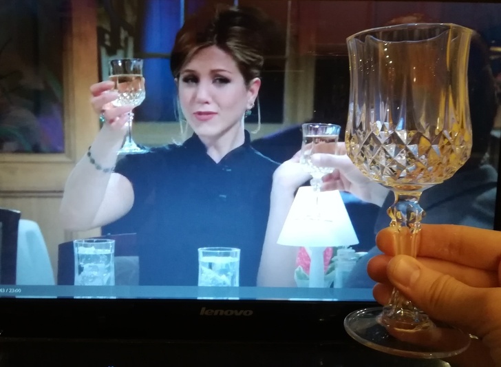 9. When you realize you're holding the same wine glass as Rachel in Friends !