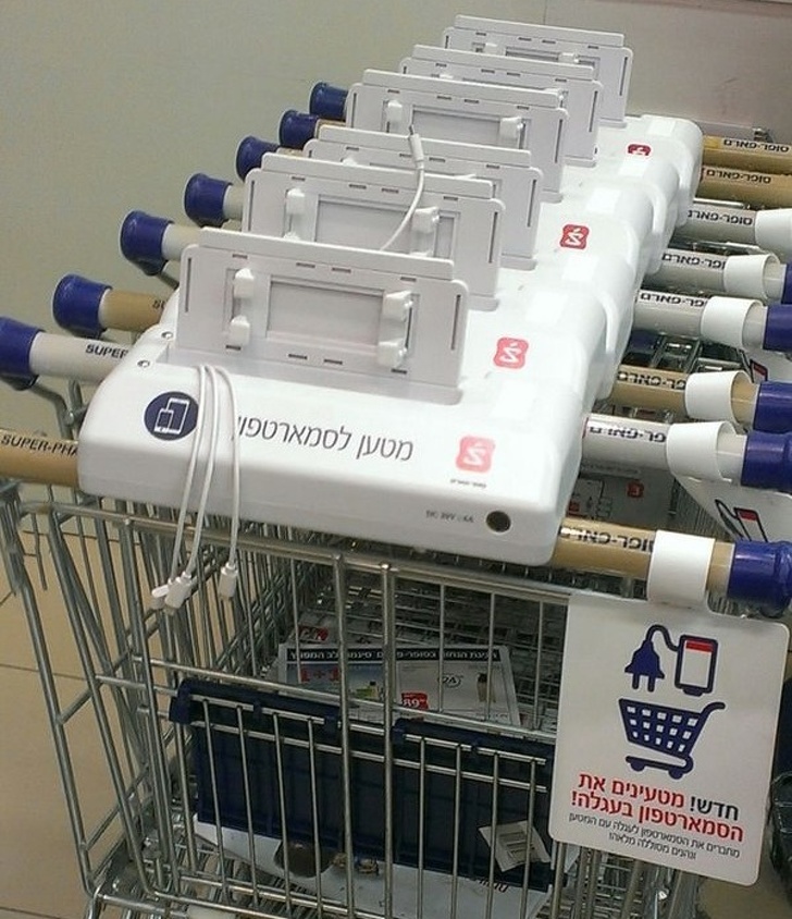 2. If your phone’s battery is dead, shopping carts in Israel have chargers!