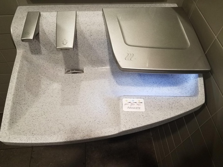 17. One sink, 3 functions: soap dispenser, faucet, and dryer!