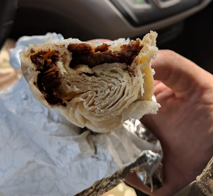 8. A steak and cheese wrap – 80% tortilla and 20% meat.