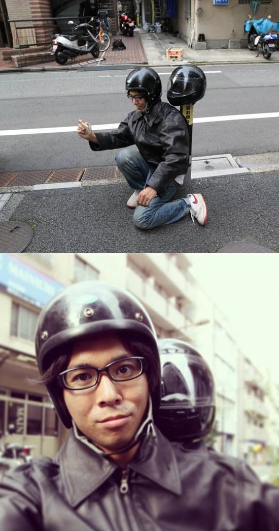 8. This selfie will make people think this man is riding a motorcycle with a "friend" when he posts it online...