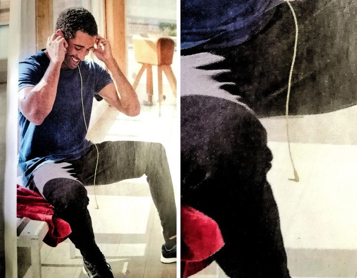 17. His headphones are not plugged into a device, but he’s listening to something!