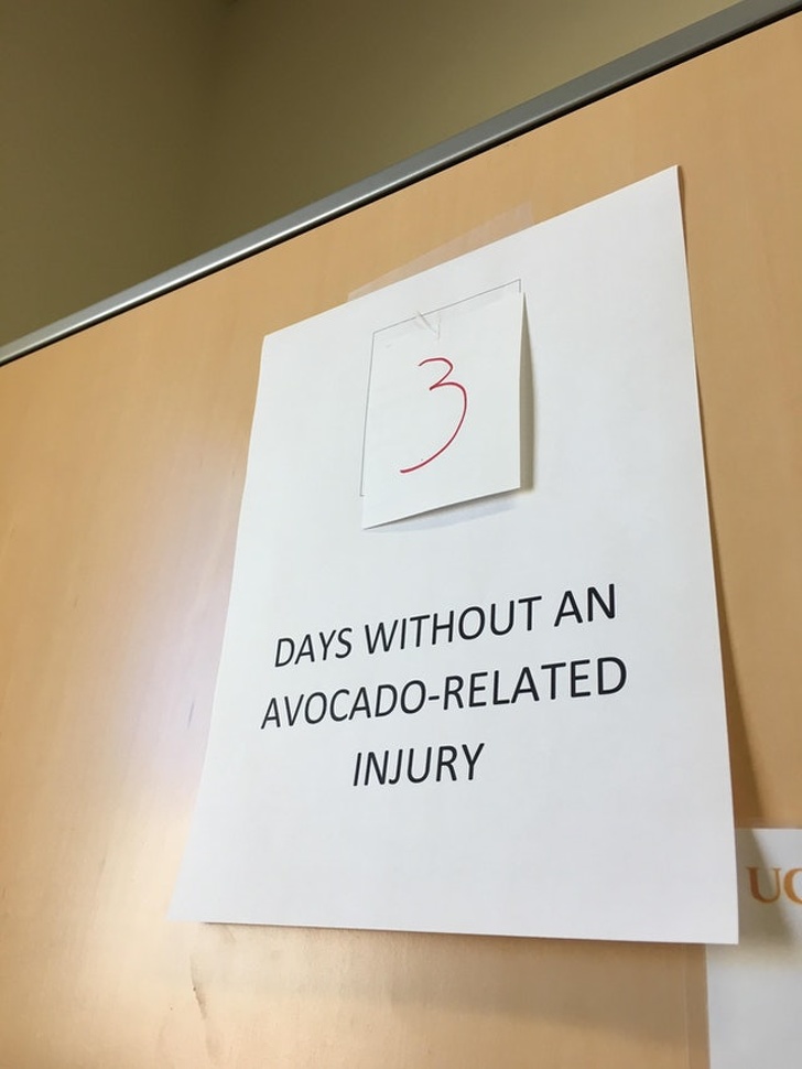 14. "My co-worker injured himself and ended up with 3 stitches after cutting an avocado"