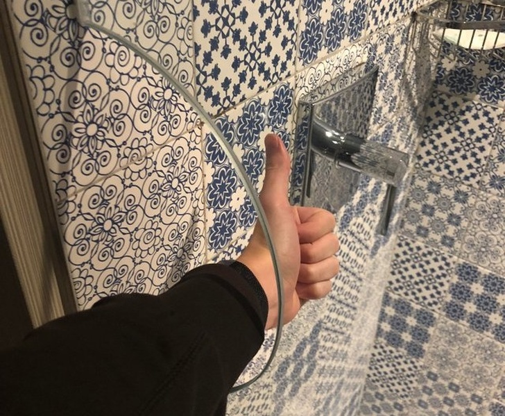 10. A hole in a shower panel so you can adjust the temperature without getting burnt or wet!