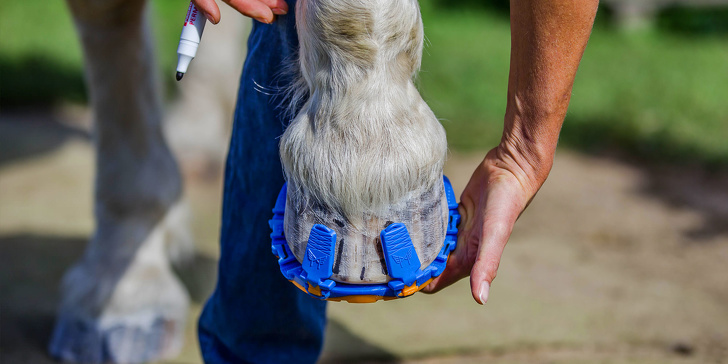 2. A clip-on horseshoe that protects horses' hooves and joints.