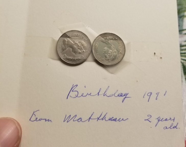 12. Her grandson gave her some coins when he was 2. After she passed away, he found this while going through her things...