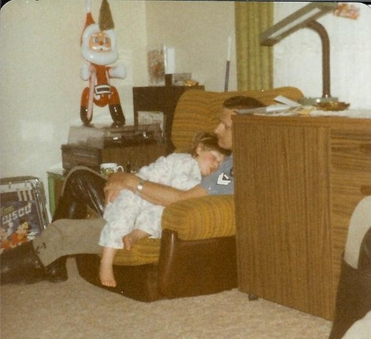 4. On that particular day, this policeman had a traumatic day, where 2 young children died in a car accident. Here, he's holding his daughter tight.