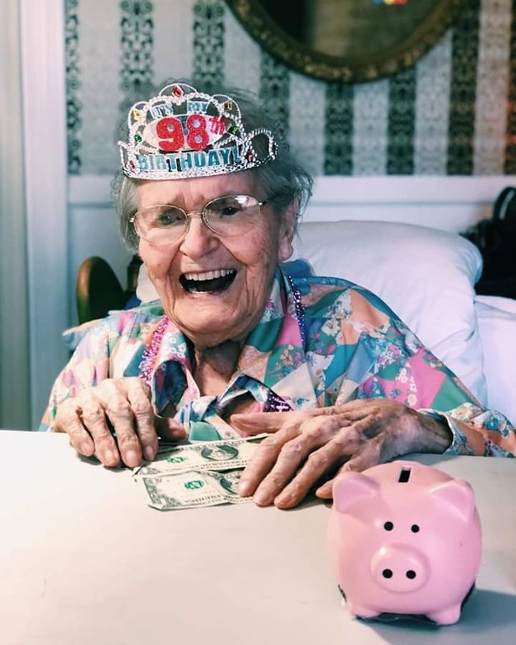 3. This 98-year-old lady always gets money to put in her piggy bank. This birthday is no different.