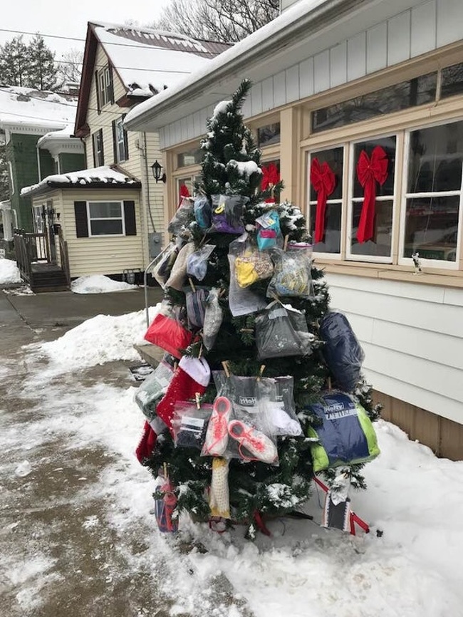 7. Every winter, this guy puts clothes and shoes on a tree for anyone who needs them.