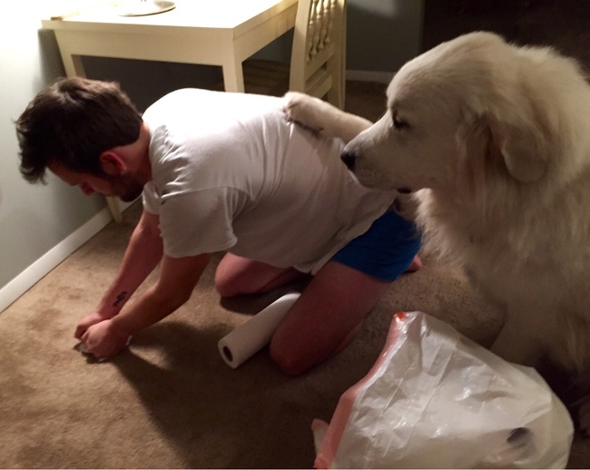 11. My dog threw up, and then he kept me company while I cleaned it up!