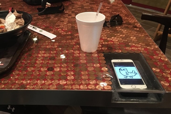 12. Tables with slots for cell phones!