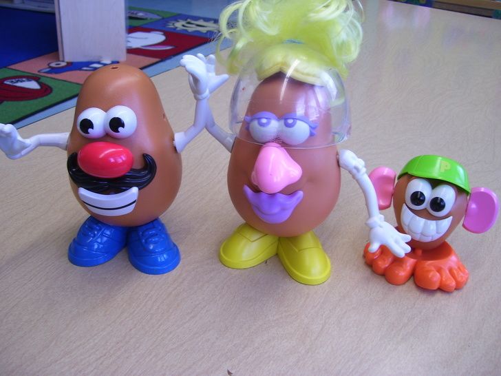 14. Potato Heads first appeared in the 50s and were used to decorate vegetable displays in grocery stores. Bodies were later added, and today you'll Mr. and Mrs. Potato Head along with their 2 kids.