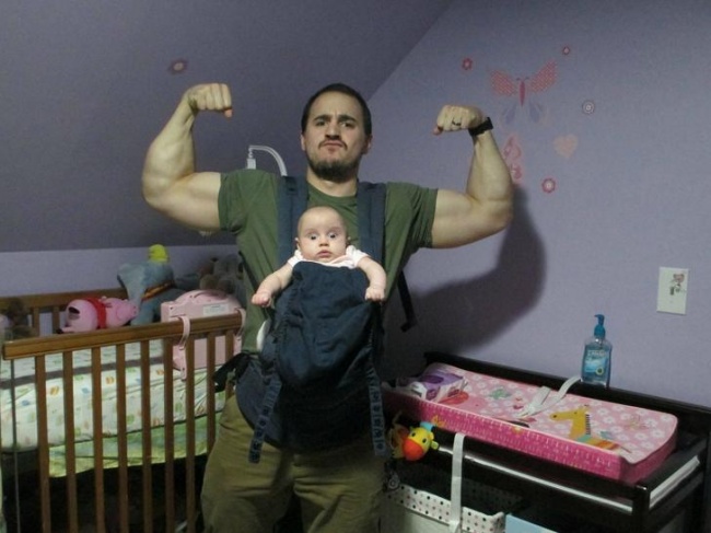 13. This man always said baby carriers were a stupid idea. Guess what his wife found on his cell phone?