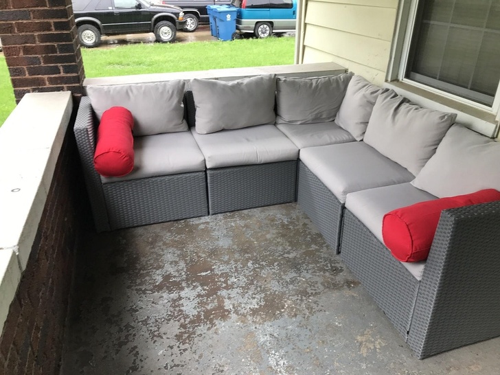 17. "Bought this outdoor sofa without checking the size!"